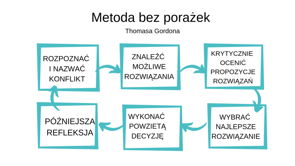 Poniżej przedstawiam prosty scenariusz rozmowy wg Metody bez porażek Thomasa Gordona do wykorzystania w budowaniu więzi z nastolatkiem, pomiędzy partnerami bądź w innych ważnych relacjach, gdzie chcecie się budować szczerość i zaufanie.